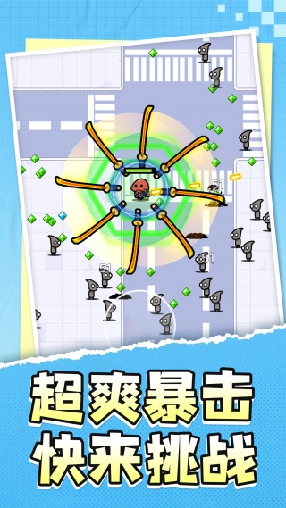 1、割草式战斗,面对成群的敌人,使用普通攻击和技能组合进行清场,享受一招消灭大片敌人的爽快感。