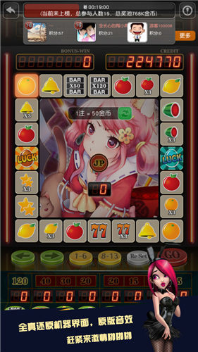 2.体验更多的精彩游戏玩法,增强还原,完善的交友系统和真实游戏街机场景,逼真的水果机战斗,分享游戏精彩动态时刻;